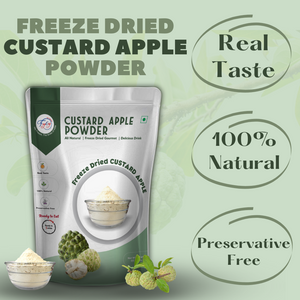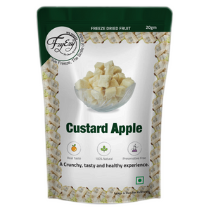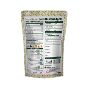 Each pack contains 100% natural freeze-dried custard apple cubes, packed in a 3-layer food-grade aluminum pouch.