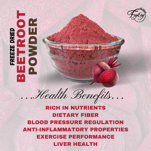 Freeze Dried Beetroot Powder is a ready-to-mix product created through advanced vacuum freeze-drying technology. This method removes the water content from beetroot, ensuring that all natural vitamins and minerals are preserved.