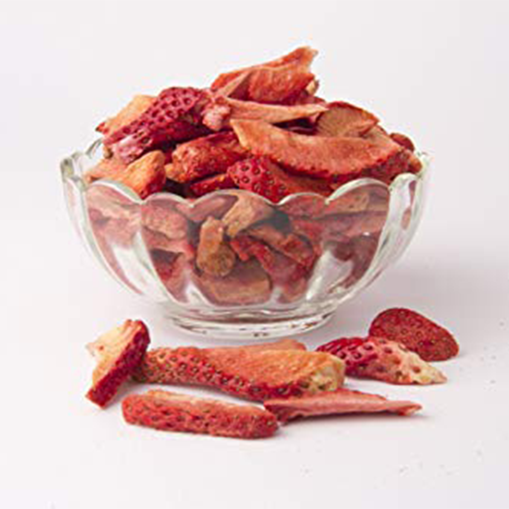 Freeze Dried Strawberry Slices are the best ready-to-eat snack. You can also use them as a topping on your favorite fruit bowl, or add them to ice cream, cakes, yogurt, fruit tea, muesli bowls, pancakes, waffles, chocolate, and other desserts to create unique dishes.