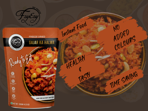 FzyEzy Freeze-Dried Gajar Ka Halwa brings you the authentic flavors of India’s most loved dessert in a quick and convenient format.
