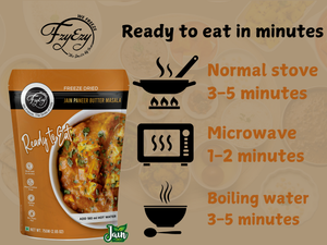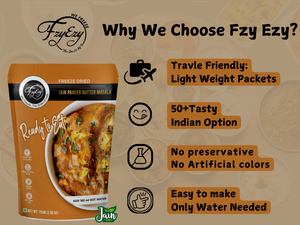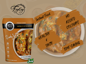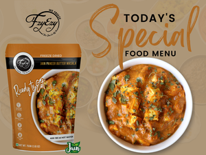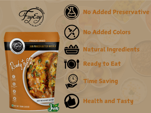 Indulge in the creamy goodness of FzyEzy Freeze-Dried Jain Paneer Butter Masala, 75gm—a perfect blend of spices and paneer chunks in a rich, buttery tomato-based gravy. Specially made without onion and garlic to meet Jain dietary requirements, this ready-to-eat Indian curry offers the same delicious taste as homemade or restaurant-quality dishes. Whether you’re on the go or seeking a hassle-free meal, our freeze-drying process ensures the freshness, aroma, and nutritional integrity of every bite. Ideal for busy lifestyles, enjoy this preservative-free and gluten-free curry wherever you are!
