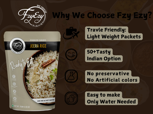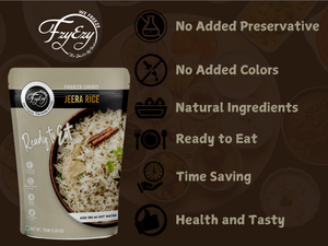 Experience the rich aroma and flavor of FzyEzy Freeze-Dried Jeera Rice, a beloved Indian classic. Made with premium long-grain rice and roasted cumin seeds, this ready-to-eat dish is prepared using advanced freeze-drying technology to preserve its natural taste, aroma, and nutrition. Perfect as a standalone meal or a side dish for curries, dal, or vegetables, FzyEzy Jeera Rice is a quick and delicious option for home, work, or outdoor adventures. Just add hot water, and it’s ready to serve in minutes!
